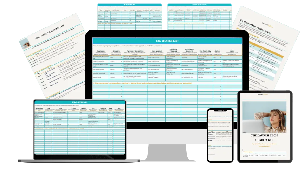 The Launch Tech Clarity Kit gives you a done-for-you documentation system, so you actually know what your tags, workflows, funnels, and sequences are doing — before your next launch.